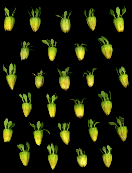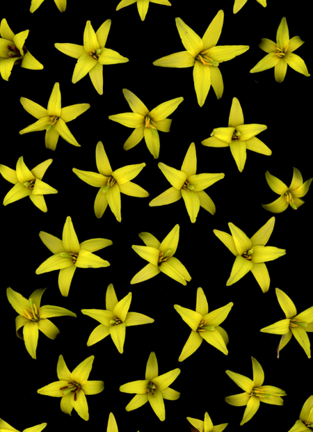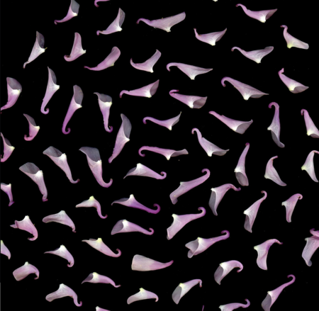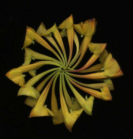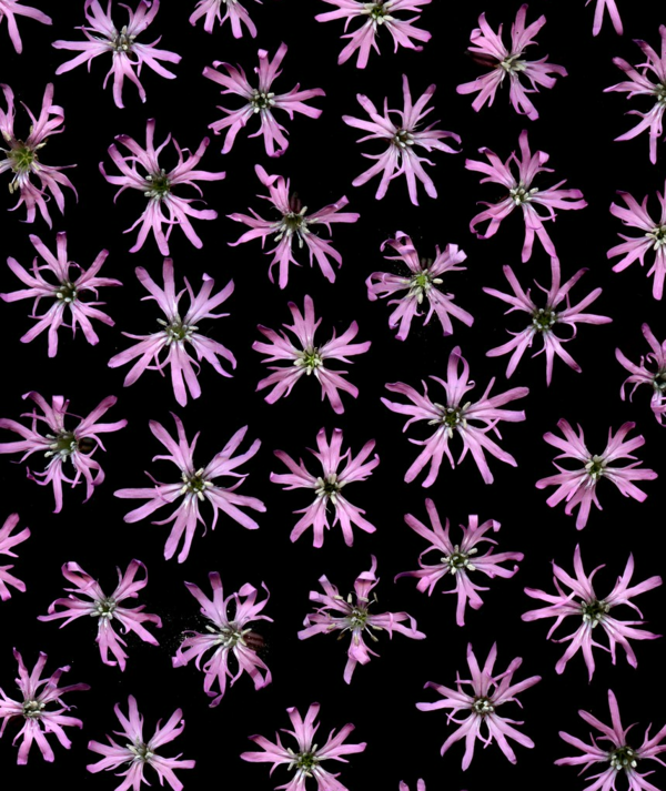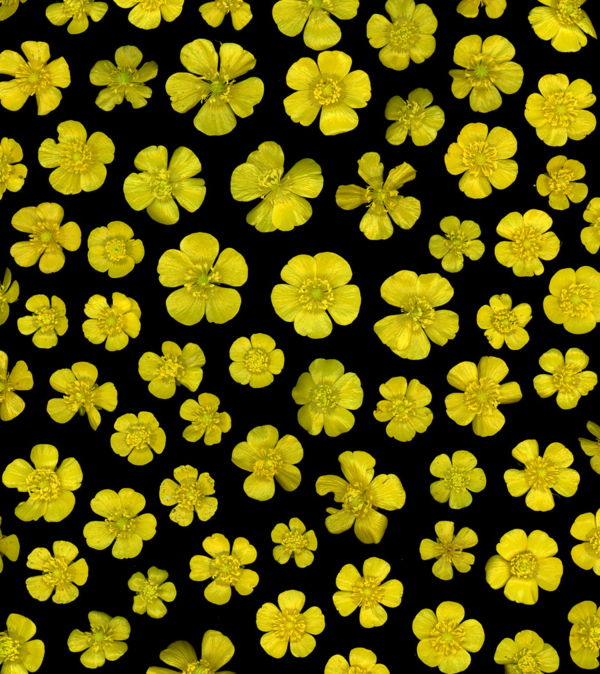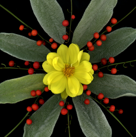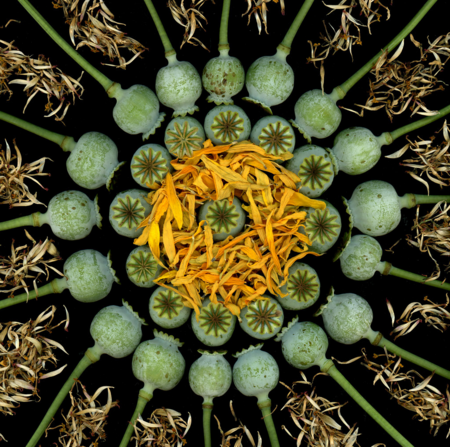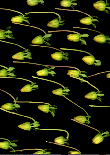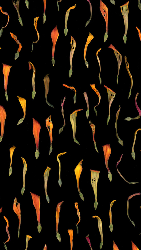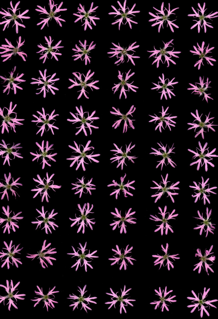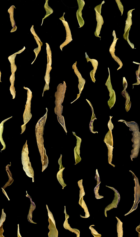 Он использует срезы, листья, семена и лепестки различных растений из его собственного сада, составляя различные композиции и орнаменты, сканируя их.