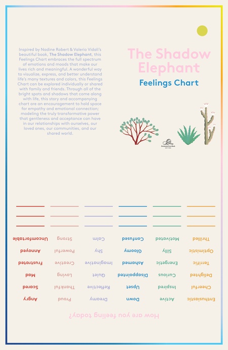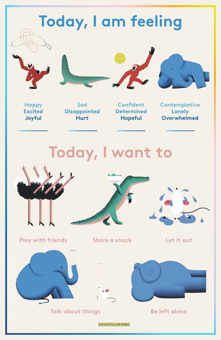 Интересно, что к самой книге прилагаются интерактивные карточки. На них читатели могут отмечать, как они сегодня себя чувствуют — грустно, весело, уверенно, одиноко, задумчиво и так далее. Таким образом, история получает развитие уже в другом формате, а дети научаются определять свои эмоции.
