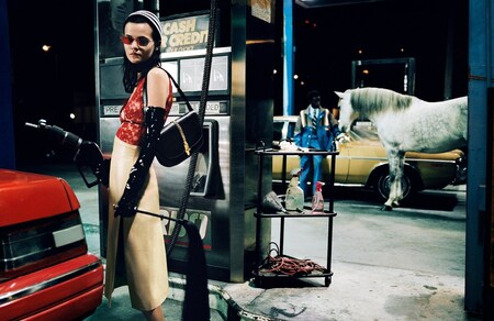 Это сюрреалистический «роман любви», где модели будто просто гуляют по городским бульварам, завтракают на парковках — и всё это вместе с лошадьми.