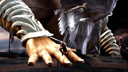 Эпизод из «God of War III» [2010]. Разработчик: Santa Monica Studio. Неминуемая смерть Зевса, «завершающая цикл». Кратос «высвобождается» из цепей судьбы и пророчества отцеубийства