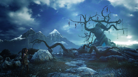В игре часто фигурирует древний мифологический символ — древо висельников, Иггдрасиль38. Традиционно, жертвы, предназначенные Одину, вешались на это дерево.