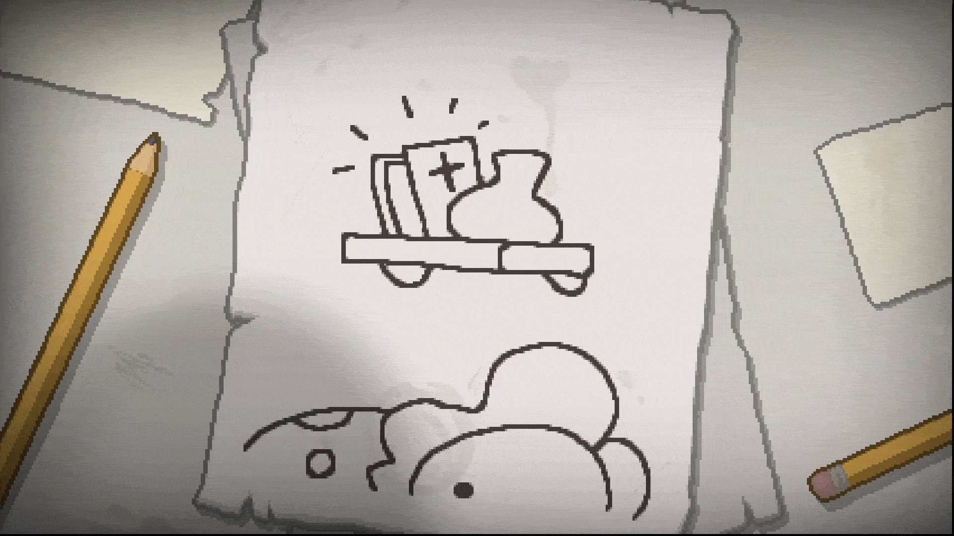1-2. Эпизоды из игры «The Binding of Isaac: Rebirth» [2014]. Разработчики: Эдмунд Макмиллен и студия Nicalis. Экспозиция и один из финалов истории, в котором Библия падает на мать Айзека и убивает ее