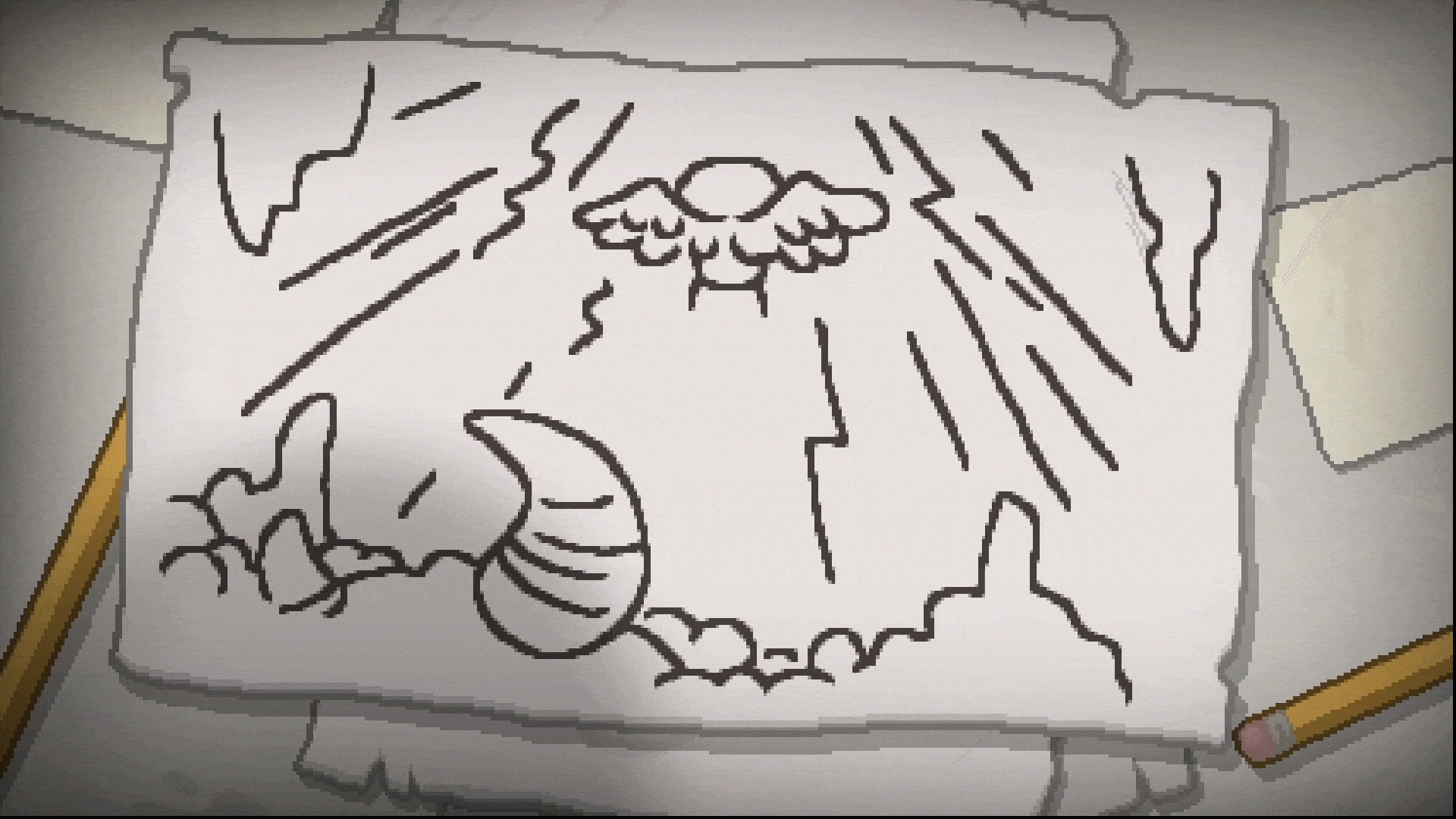 Концовка 16 игры «The Binding of Isaac: Rebirth» [2014]. Разработчики: Эдмунд Макмиллен и студия Nicalis. Айзек лежит в своём сундуке из-под игрушек, тяжело дыша, постепенно превращаясь в демона