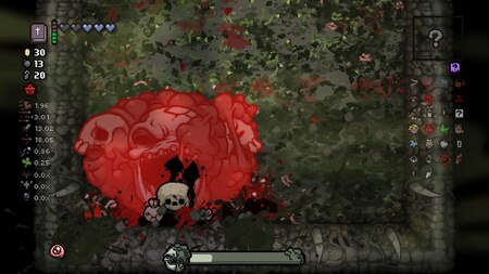 Скриншот из игры «The Binding of Isaac: Rebirth» [2014]. Разработчики: Эдмунд Макмиллен и студия Nicalis. Айзек сражается с Monstro. II