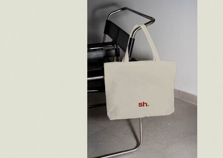 Шоппер и футболка — брендированный мерч, поддерживающий визуальную идентичность через типографику и графику.