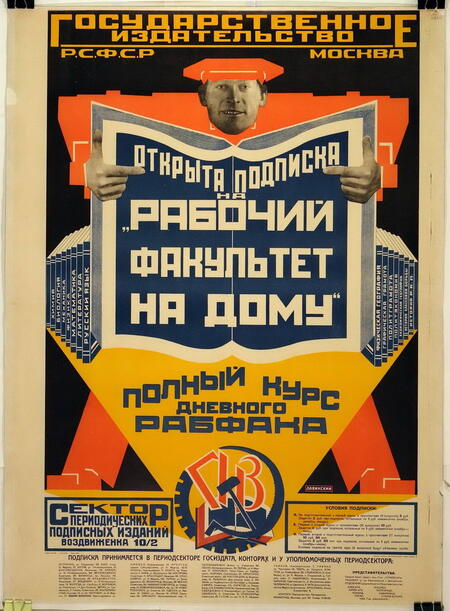 Лавинский А. М., Открыта подписка на «Рабочий факультет на дому», 1926 год/Маяковский В.В., Крестьянское хозяйство улучшит грамотей. По учебникам ГОСИЗДАТА учи детей., Степанова В.Ф., 1920 год