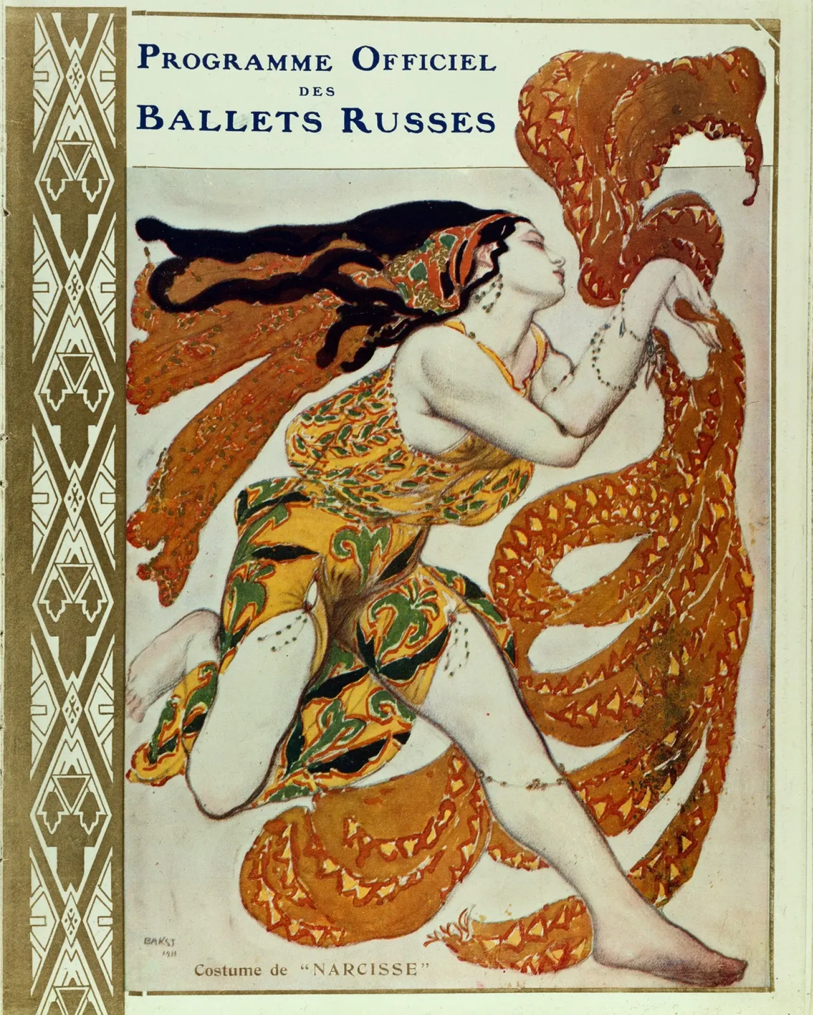 В России, особенно в «Русских сезонах», Лев Бакст превращал костюм в мифологическое продолжение тела: ткань подчёркивала чувственность, экзотику и театральную волшебность, но в рамках сценического ритуала. Рерих, напротив, подавлял индивидуальность грубой тканью, превращая тело в жертвенную сущность.