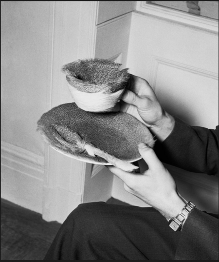 Мерет Оппенгейм со своими произведениями искусства — меховой чашкой, тарелкой и ложкой Фото: слева — Джон Линдси, справа — dpa/picture-alliance/dpa