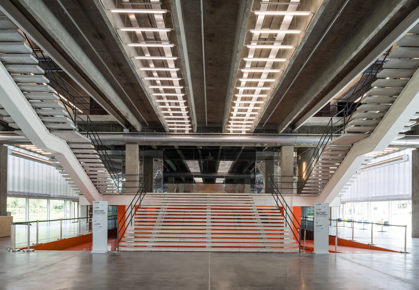 — Павильон был изначально предрасположен к подобной постройке засчет своей архитектуры, высоких потолков и огромного количества стеклянных конструкций, что пропускает очень много естесственного освещения. Так же павильон имел уже готовые залы для проведения выставок и мероприятий.
