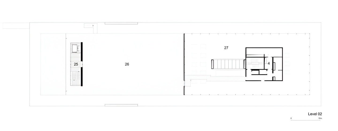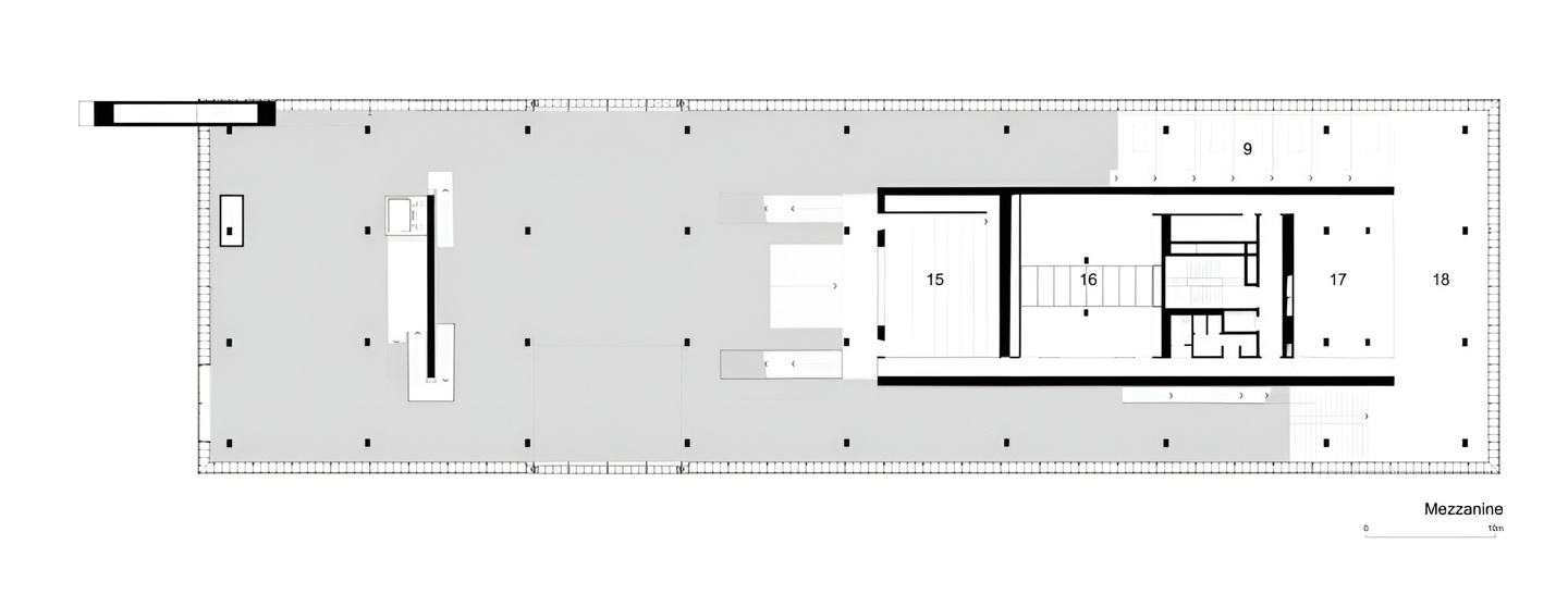 Композиционно, здание имеет монолитно параллелепипедную форму, в котором исходное функциональное зонирование представляло собой: